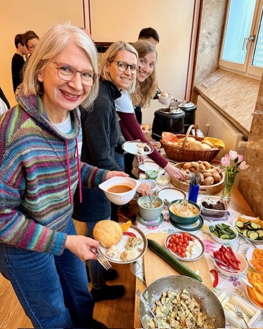 Zum Abschluss kamen alle Teilnehmenden im Marienheim zusammen. Bei einem kleinen Imbiss wurde geteilt, probiert und weiter erzählt – genau so, wie es sein soll: miteinander statt nebeneinander.