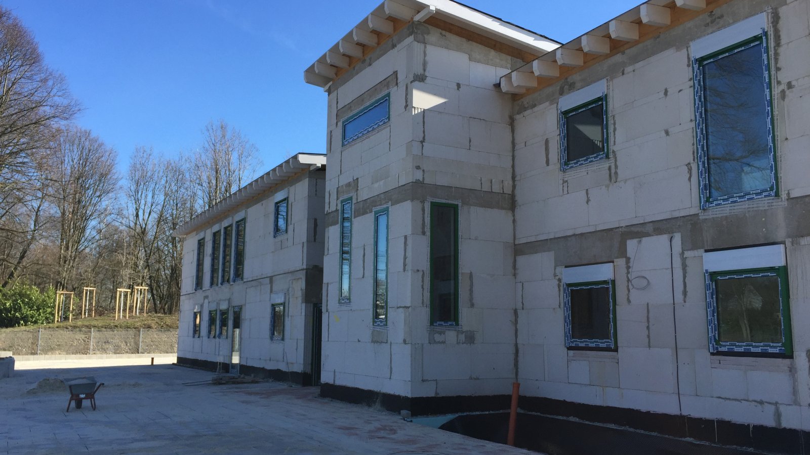 Bauarbeiten gehen bei strahlendem Sonnenschein gut voran