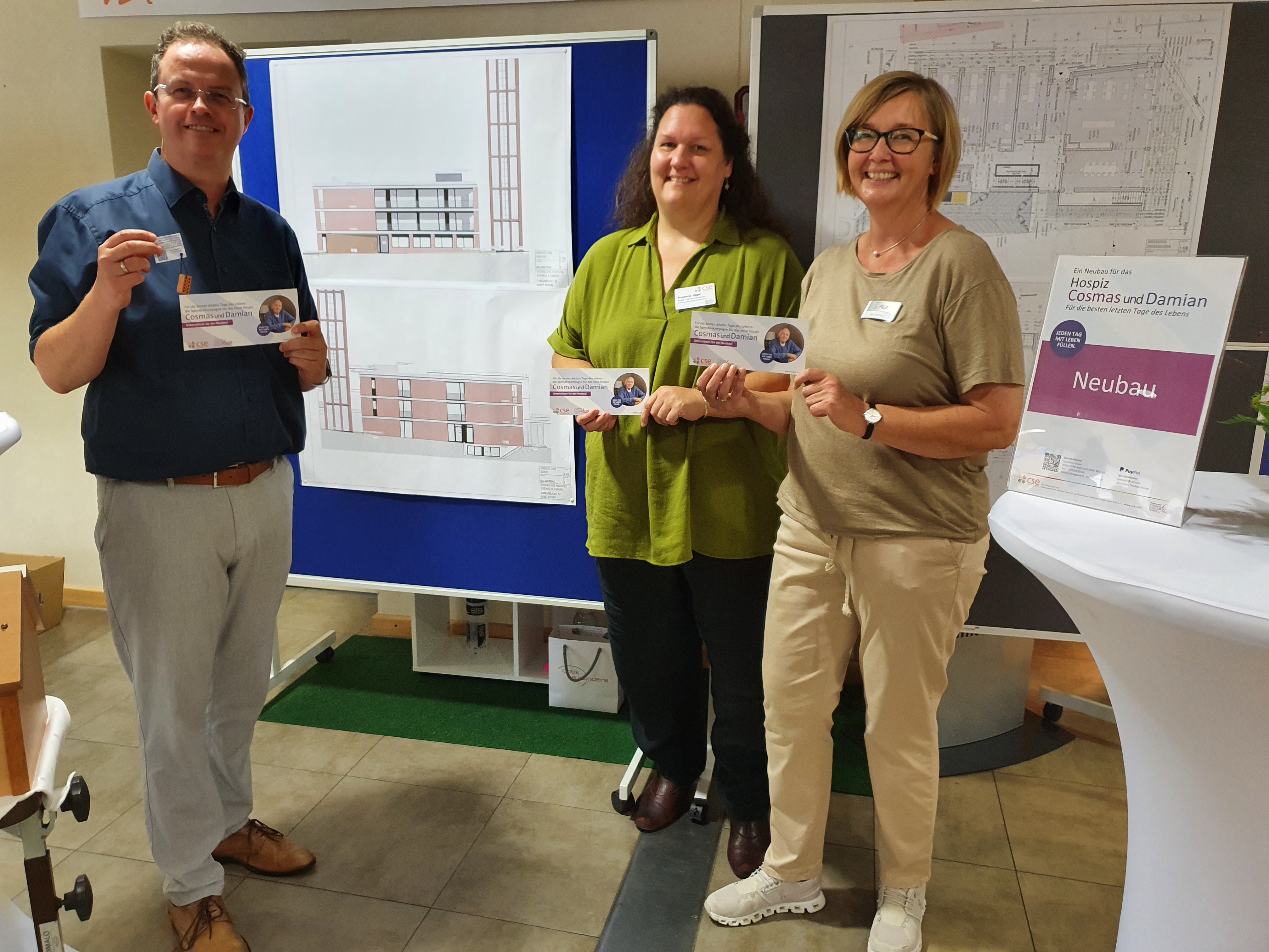Unser Geschäftsführer Andreas Bierod informierte zum geplanten Hospiz-Neubau an der Tangabucht und präsentierte die Pläne, Stefanie Lucht und Lisa Mundil vom Ambulanten Hospizdienst gaben Tipps zur Verbesserung der Lebensqualität sterbender Menschen, Petra Rohrberg, Vorsitzende des Fördervereins Cosmas+Damian Hospiz e.V., und Stefanie Lucht sprachen über zivilgesellschaftliches Engagement in der Hospizarbeit - in Form von Spenden oder in Form eines Ehrenamts - und Susanne Jäger, Einrichtungsleitung des Hospizes Cosmas und Damian, stellte im Gespräch mit einer Mitarbeiterin und einer Angehörigen den Alltag im Hospiz vor und gab weiterführende Informationen zum Thema Hospizplätze. Die kreativen Könner öffneten ihr Lädchen und im Café gab's frischgebackenen Kuchen und Raum für gute Gespräche. Wir bedanken uns bei allen Mitarbeiter:innen für den großartigen Einsatz!