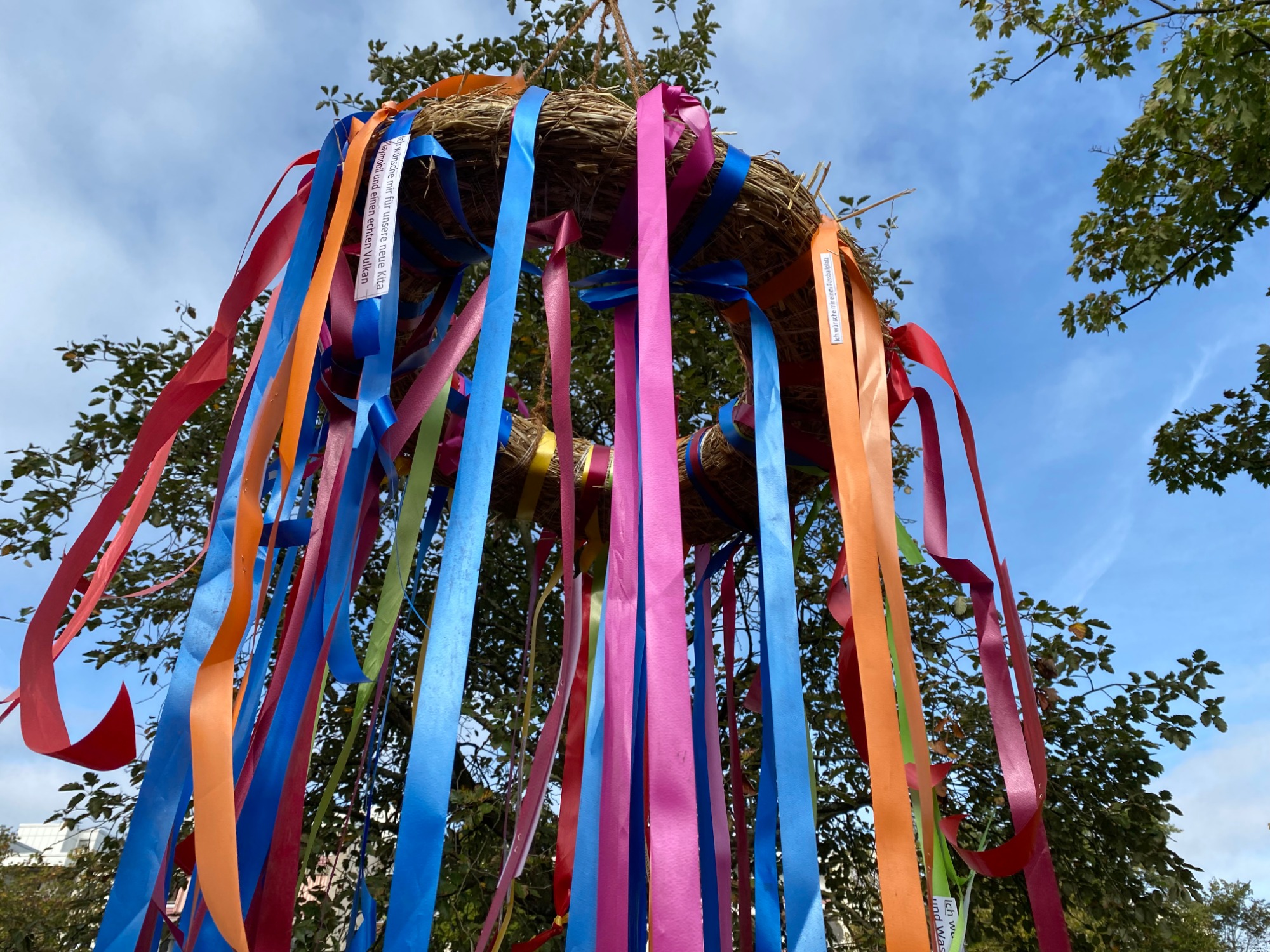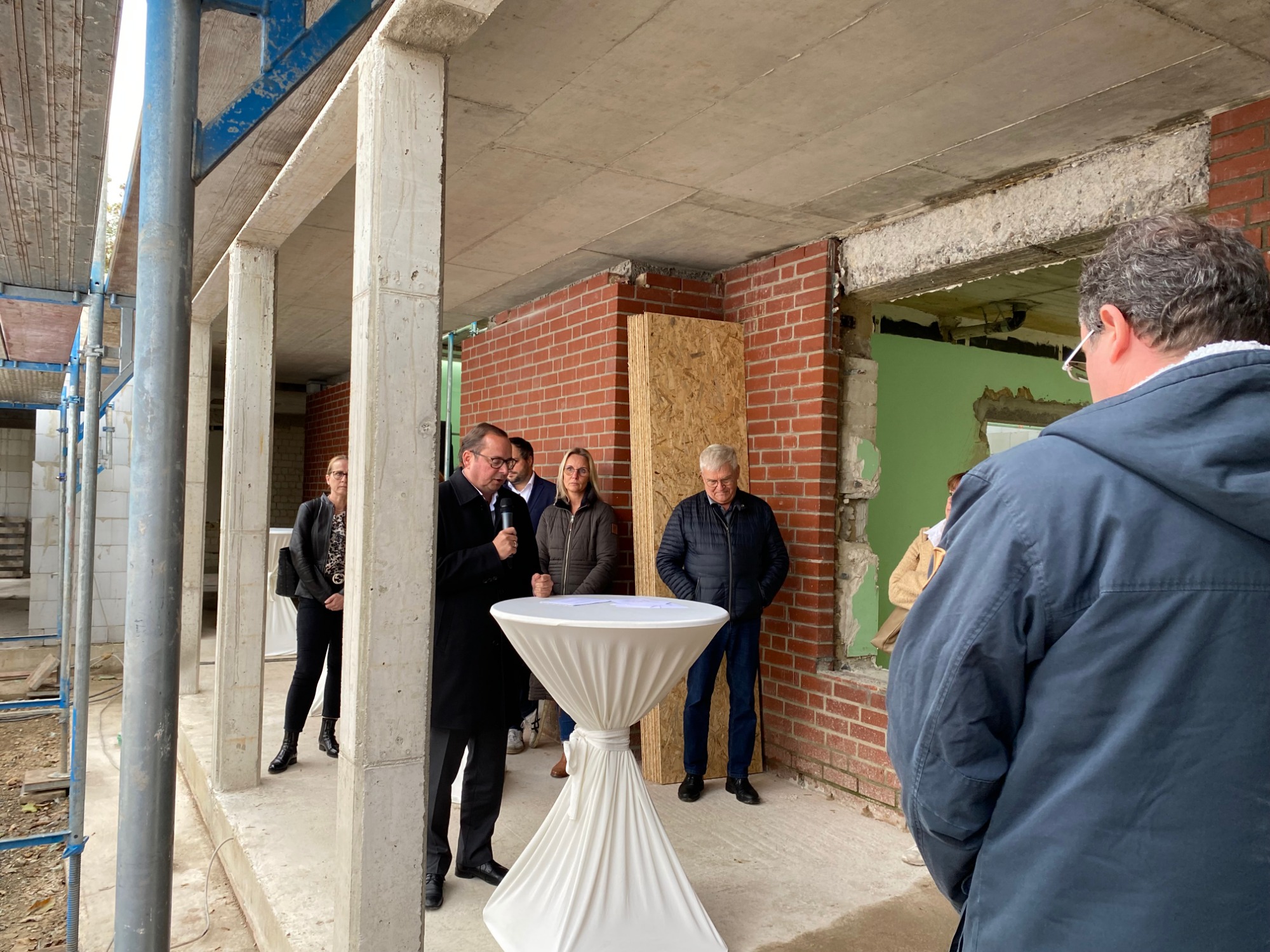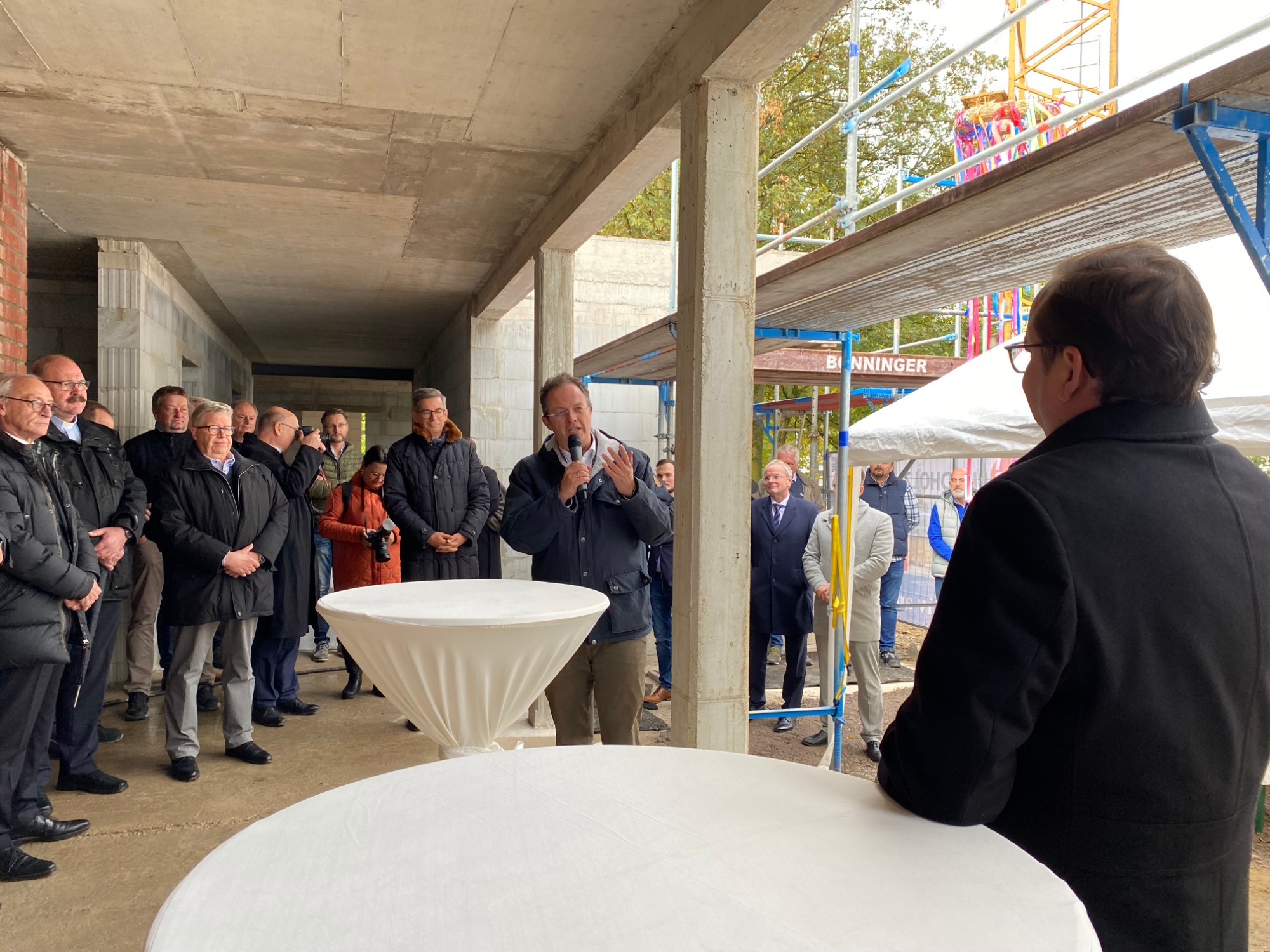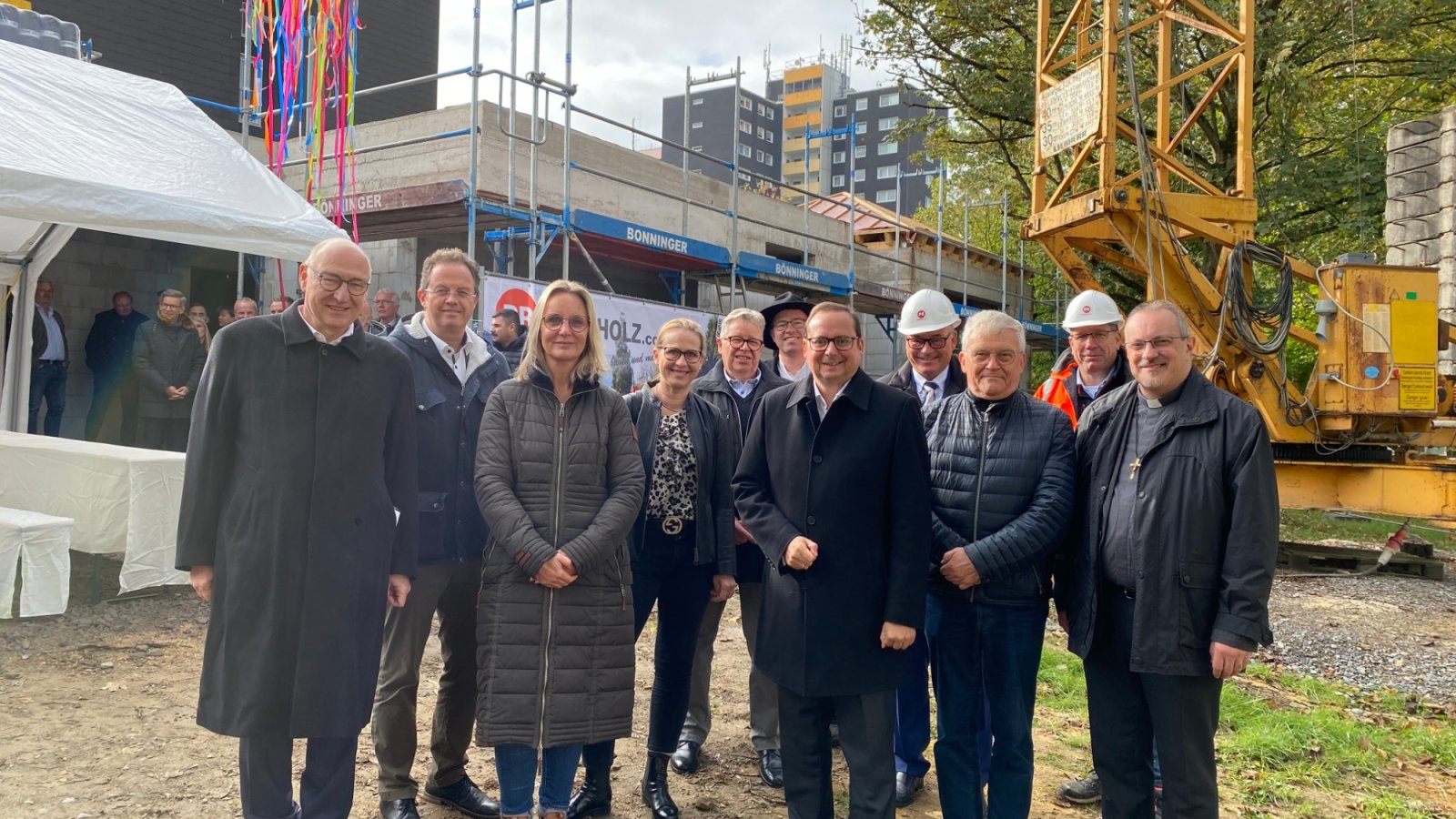 Am 16. Oktober wurde im Beisein von Oberbürgermeister Thomas Kufen Richtfest im Familienzentrum Saltkrokan gefeiert. Der bunte Richtkranz wurde von den Kindern des Familienzentrums, die derzeit in Containern auf dem Grundstück untergebracht sind, gestaltet und mit ihren Wünschen behängt.