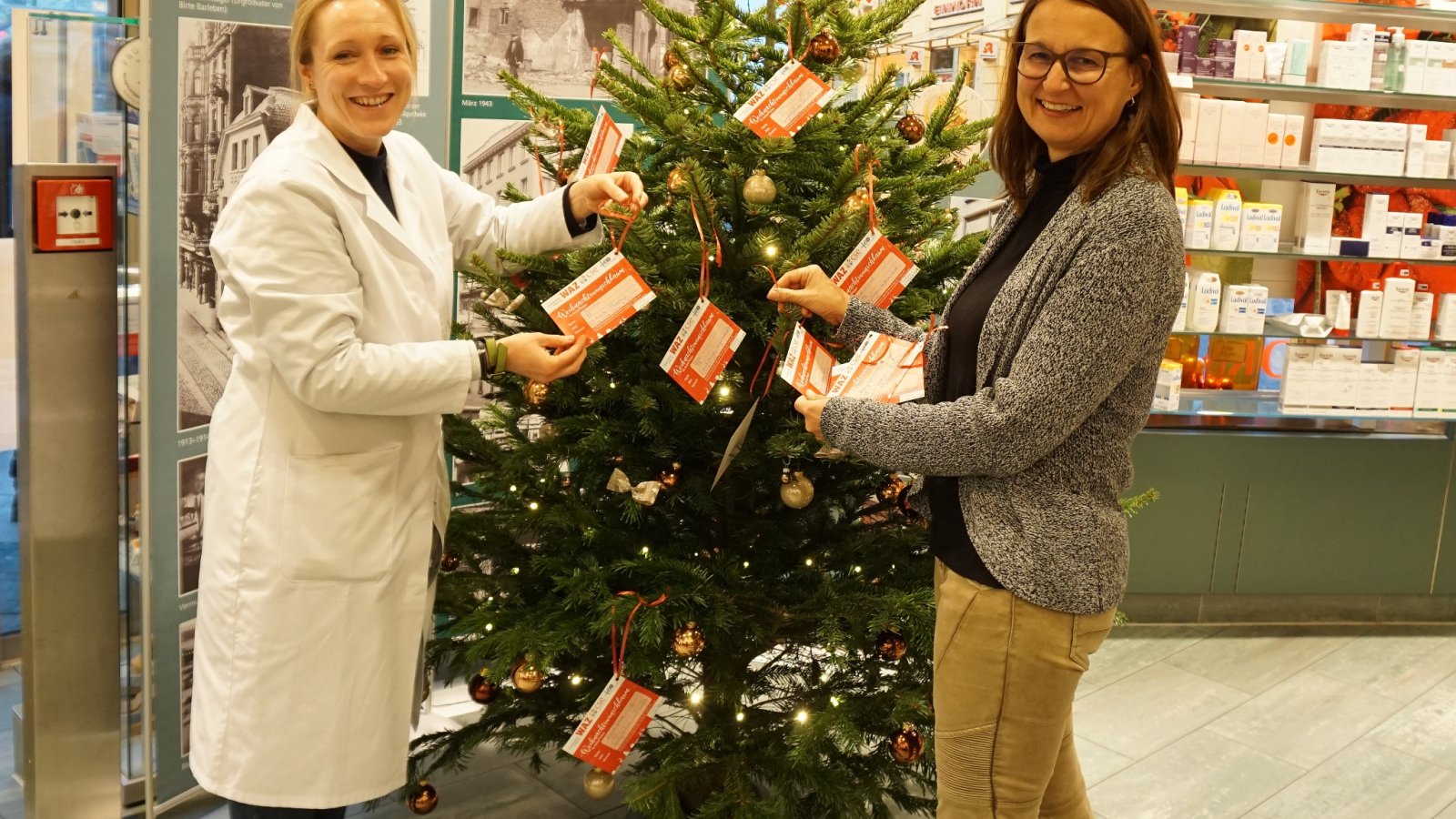 Ab heute stehen die Wunschbäume in der Einhorn-Apotheke und bei der WAZ