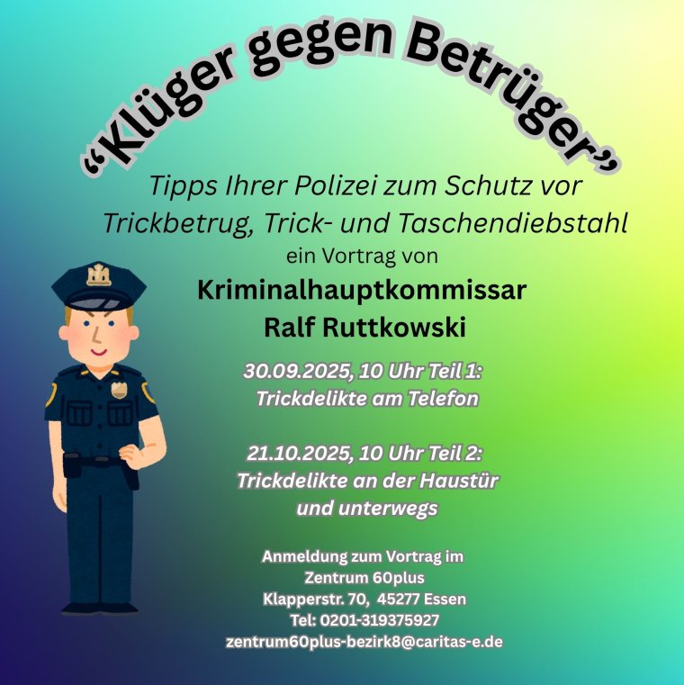 In zwei Terminen wird Kriminalhauptkomissar Ralf Ruttkowski über aktuelle Betrugsmaschen aufklären und ihnen Tipps und Tricks an die Hand geben, wie sie es vermeiden können dort hinein zu geraten.
